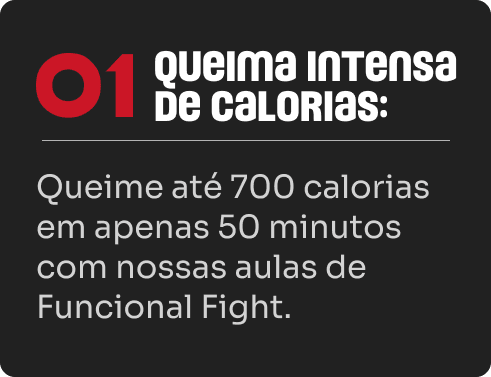 Nossa metodologia exclusiva combina funcional com movimentos de luta, ajudando a queimar até 700 calorias em 50 minutos, além de melhorar força, agilidade e bem-estar mental.