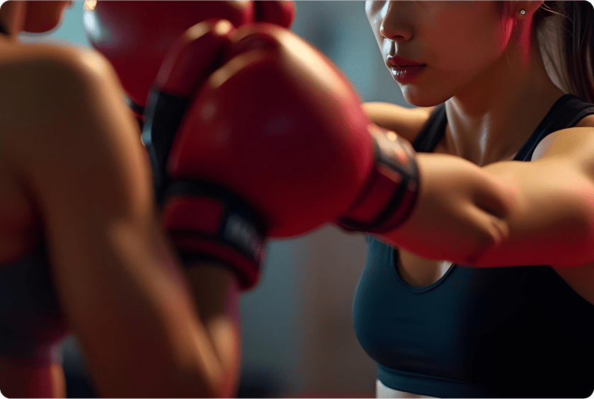 Em seguida, partimos para a ação! Incorporamos técnicas de boxe, Muay Thai e MMA de forma acessível, criando um treino intenso e desafiador.